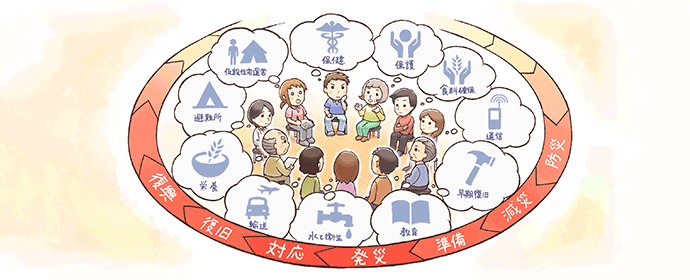 「保健医療」「避難所」「食料」といったカテゴリー(クラスター)ごとに担当組織を固定します。